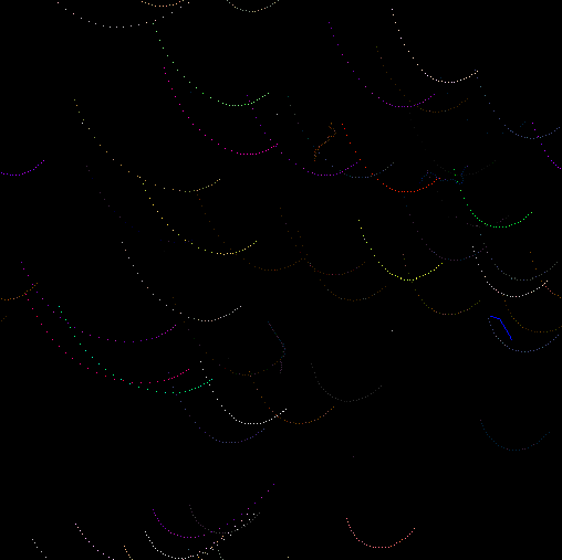 [4] This function is used in the interval where r is in the range from 0 to 1 and chaotic when r is > 0.86 and x starts as a low value. To generate a series of notes, an initial x value is fed into the equation and a new x is generated. This new x value is then scaled to match an audible MIDI note range and played. The new x value is then fed back into the equation generating a new note. The process continues at a certain metronome rate creating a melodic line. During the generation of new x values metronome speed and the r constant can be changed which forces the function to travel into new chaotic fields and structures. In the EIDEA system, numerous chaotic functions playing various instruments are used to create a thick texture and complex interactions."